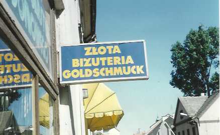 The sign that tickled me the most said “ZLOTA BIZUTERIA GOLDSCHMUCK.” Now from the zlota I can pretty much figure out that it was likely a money changing business. Goldschmuck baffled me. In Yiddish, a language with Eastern European roots, the phrase schmuck generally means idiot or, if you want to get graphic, penis (although “dick” or “dickhead” are probably more accurate). I’m pretty sure “gold” means gold, but even that doesn’t make any sense because I can’t figure out what the owner was trying to say. Is he a rich idiot, a well-off prick or has he had an operation to install an pricy penal implant? Seen  from another perspective, it could be interpreted “goldsmith,” but if that’s the case it would mean the families with one of the most common names in America are saying that they’re fools or dickheads. Maybe that’s why everyone tries to keep up with the Jones’s, not the Smiths.