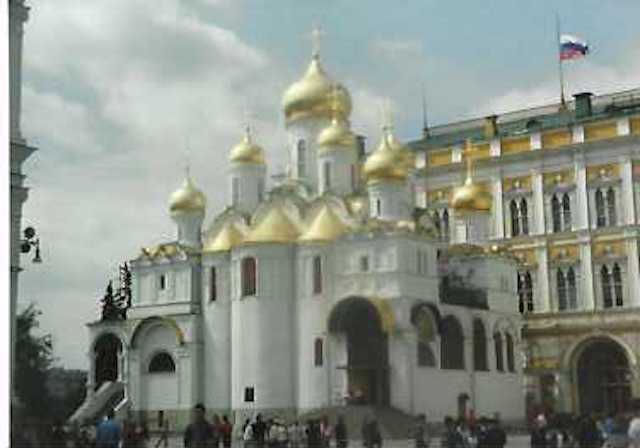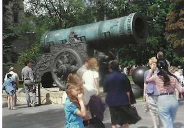 The Kremlin was also eye-opening. I always thought The Kremlin was one building located in Red Square where the Politburo met. Leona quickly disabused us of this notion. Kremlin means “fortress” and is the seat of Russian government, but isn’t one building. Instead it’s a walled-in castle complex with 18 buildings, 20 towers, a square filled with churches and is also home to the world’s largest, heaviest bell and the world’s largest caliber cannon.